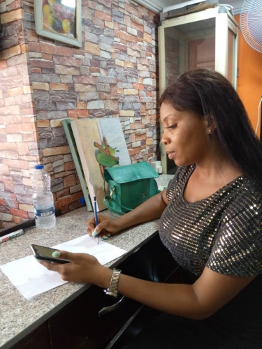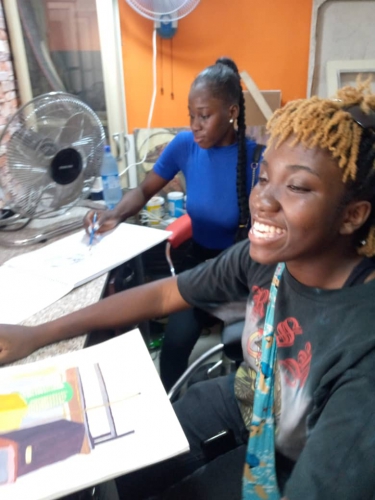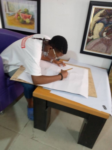 Sodade Ayoola working at the Sodaism studio